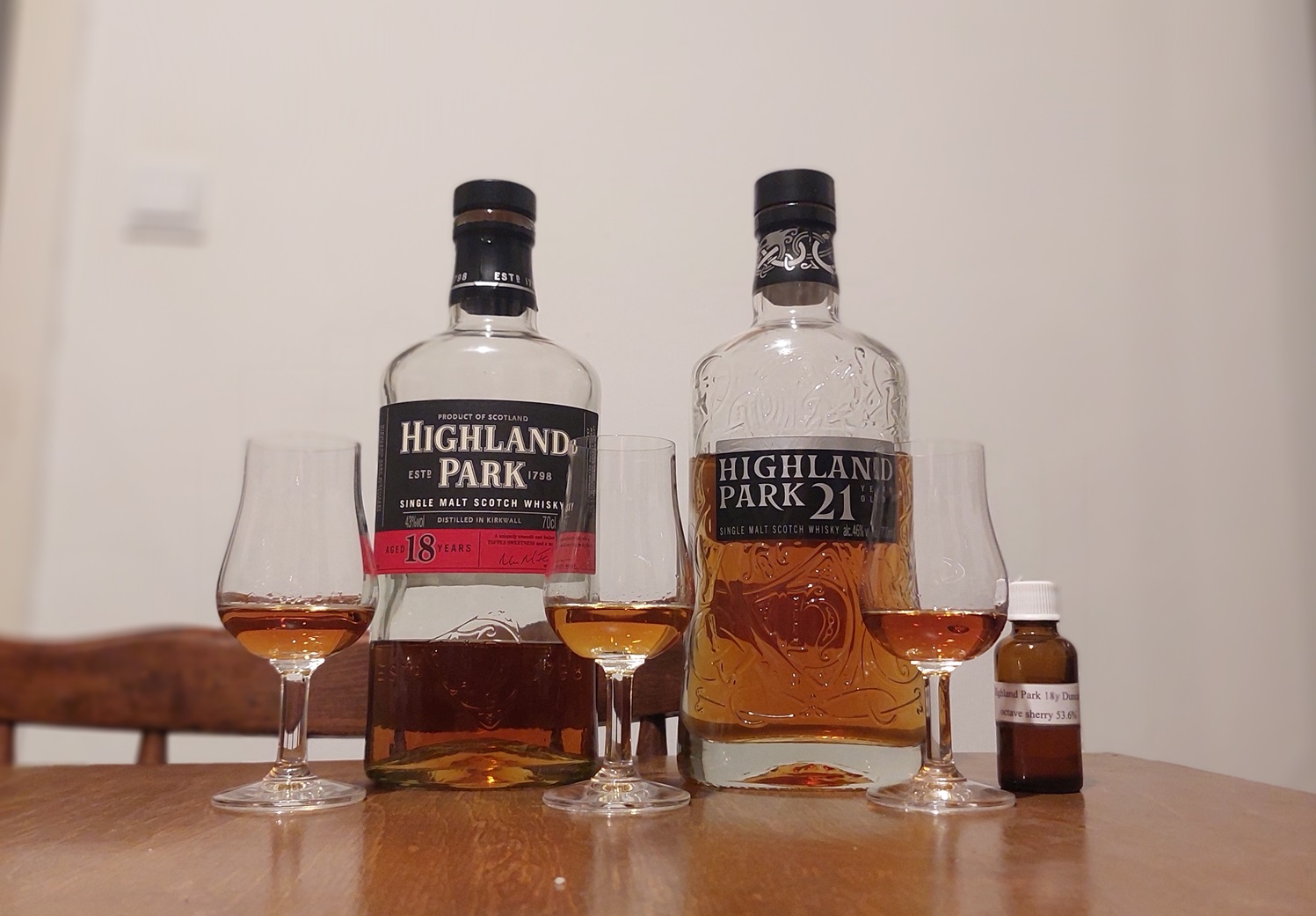 Vasárnap este gondoltam egyet, és úgy döntöttem, hogy áthighlandparkozom magam a következő hétbe. Három változatot hoztam össze egy légtérbe: egy régi piros csíkos tizennyolc éveset, egy 2020-as kiadású, újabb viking dizájnú huszonegy évest és egy octave hordós sherrys tizennyolc évest a Duncan Taylor független palackozótól. Az összehasonltások olykor olyasmire is rávilágítanak, amit magában az ember észre sem venne. Szeretem is gyűjtögetni a tematikus sorokat, hogy még egy piszkavasnyival több értelmet tuszkoljak az alkoholfogyasztásomba.