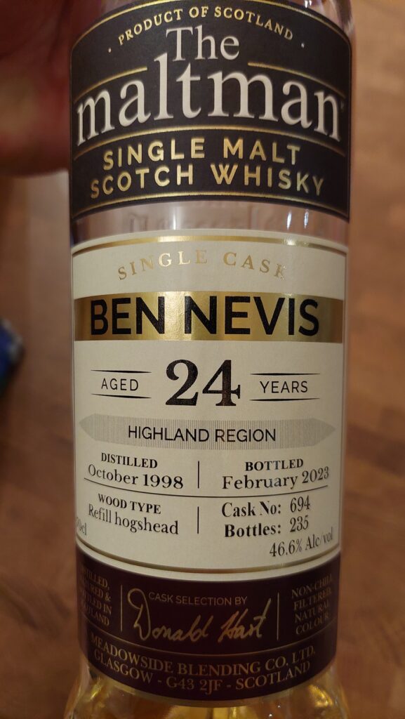 Már nem akartam belepréselni a fogyatkozó időmbe, így elviteles üvegcsébe kértem egy 24 éves, bourbonös Ben Nevis mintát is. Meg kell majd adni neki az időt és tiszteletet otthon.