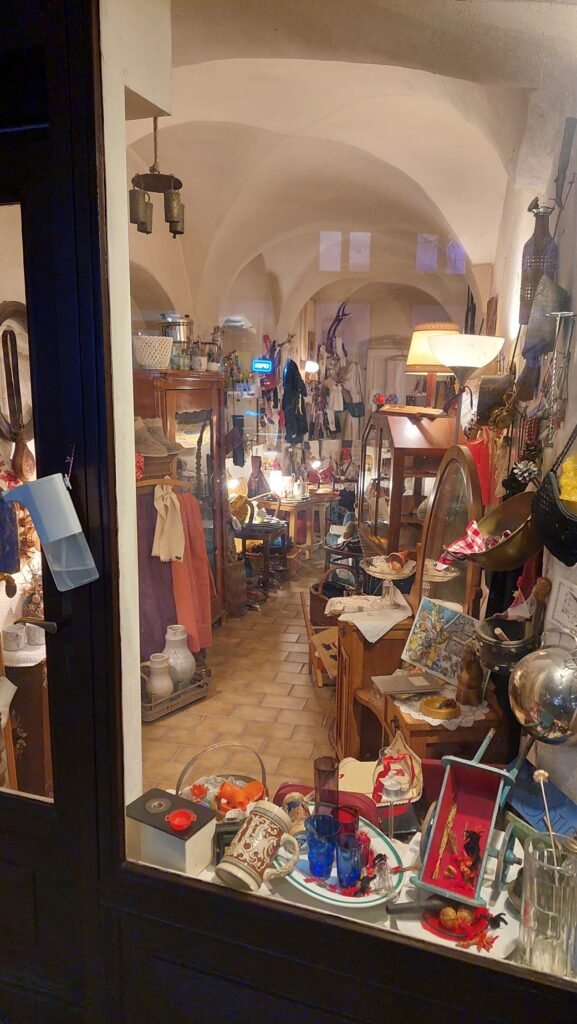 Egy jó kis metrólezárás tarkította még a kiruccanás végét, úgyhogy gyalog és egy dugig tömött villamossal zártam a bécsi tömegközlekedést. Egy kis bútorkészítő(javító) cégre és antikváriumra (igazából tíz másodperc alatt nem volt időm kitalálni) is figyelmes lettem az egyik épület mellett elsuhanva. Sajnos nem volt már időm bemenni, pedig egy valóságos kis ékszerdoboz volt a boltocska, ami egyben a műhelynek is tűnt.