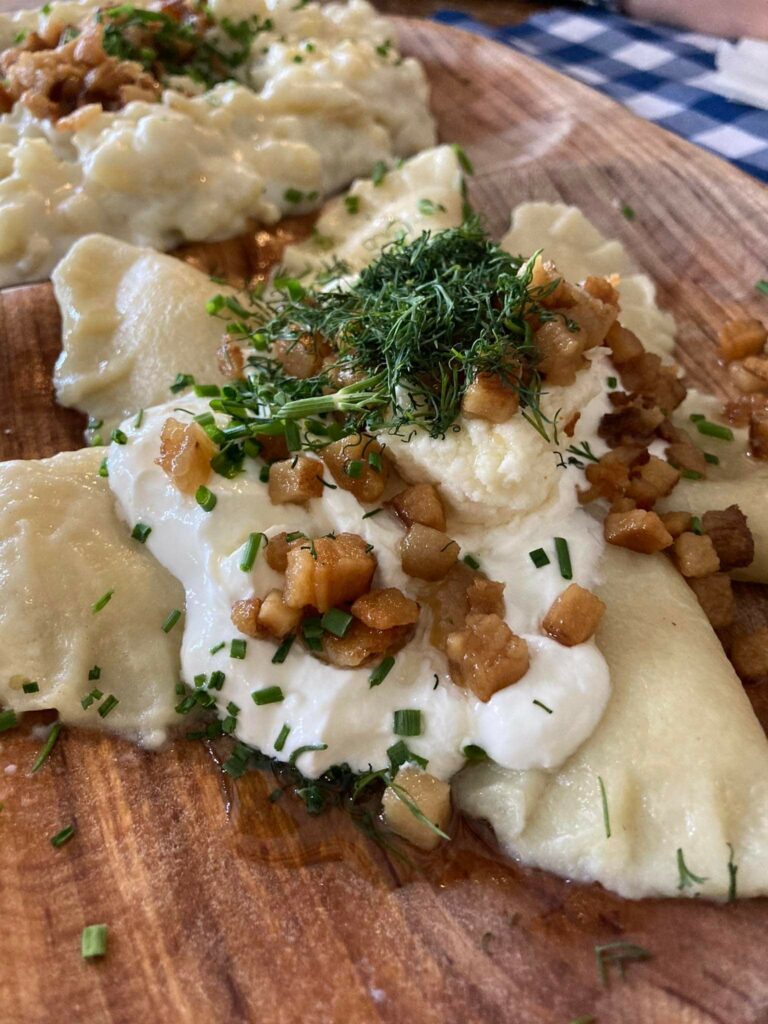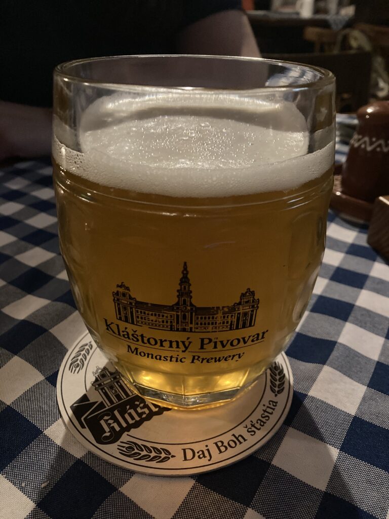 A sörkorcsolya égető hiányát remélem a következő alkalommal már sikerül megoldaniuk, mert néhány falat nélkül végig kóstolni egy fél napot bátor vállalkozás. Mi sem voltunk ennyire vakmerőek, egy ponton a fesztivál élményt megszakítva kimentünk vacsorázni, ahol hrabali abszurditások sorozatába keveredtünk. Megjegyzem Hrabal kocsmák félhomályában töltötte a fél életét, így a furcsaságokért nem kellett messzire mennie. Egy tejfakasztó buli kellős közepébe sikerült belecseppenünk, ahol már az érkezésünkkor is a Jingle Bellst és az O Tannenbaumot kántálta egy harminc fős német társaság. Jó ebédhez szól a nóta, hát még vacsorához! A társaságukban eltöltött egy óra után semmi kétségem nem maradt afelől, hogy a gyerek tejben, vajban fog fürdeni… Megjegyzem nem csak a hangulat és a kaja volt jó, de a házi csapolt sörük is fantasztikus.