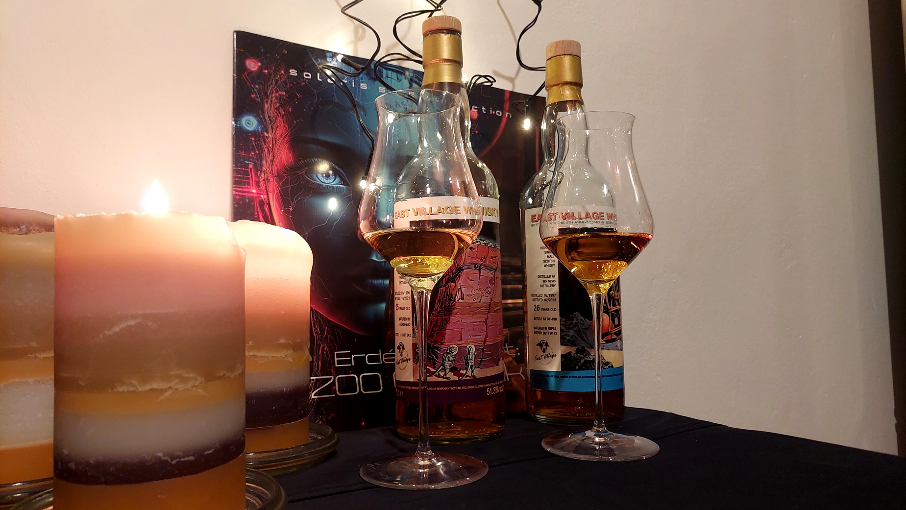 Kiváló zenék, kiváló whiskyk. A Ben Nevis kortyok újra és újra lenyűgöznek. Jó, hogy kaptunk egy kis időt a Földön, jó, hogy adtak mellé érzékszerveket, hogy felfogjunk egy kicsit a világból, jó, hogy nem csak lebegünk a végtelen űrben tudatlanul a sötétben. Jó, hogy megízlelhetjük a szerelmet, a szelet. Jó, hogy ilyen italokat ihatunk, ilyen zenéket hallhatunk.