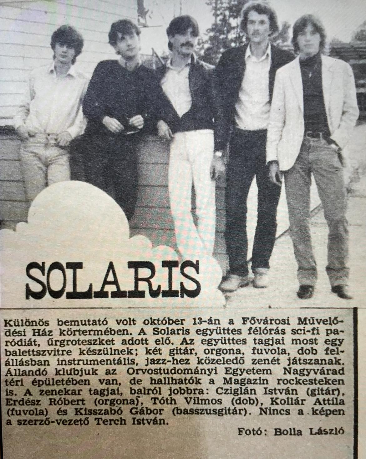 Több visszautasított felvétel után végül valami csoda folytán (Cziglán István (1959-1998) gitáros vitte be a demót) megjelent a már említett Marsbéli Krónikák album, amit egy jó ideig nem követett újabb, a második anyagot visszadobták, mondván, hogy instrumentális zenére, elvontabb darabokra nincs szükség Magyarországon, pedig az első nagylemez vagy negyvenezer példányban fogyott el. 1986-ra a zenekar egy búcsúkoncerttel megszűnt, a csapat tehetségét azonban jól mutatja, hogy a Solaris tagjaiból alakult például az Első Emelet 1982-ben (a korábban kivált zenészekből), Erdész Róbert, Kollár Attila, Pócs Tamás, Cziglán István és Gömör László pedig megalakította a nagy sikereket elért Napoleon Boulvardot 1985-ben Vincze Lilla énekesnővel kiegészülve. Júlia nem akar a földön járni. A zenészek polgári foglalkozásukat sem hagyták maguk mögött, például Dr. Kollár Attila (fuvola) radiológus főorvossal ma is találkozhatsz szakrendelésen.